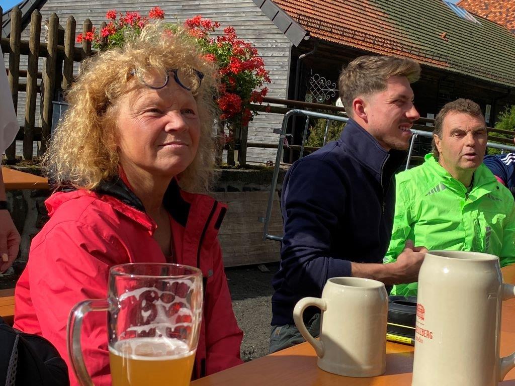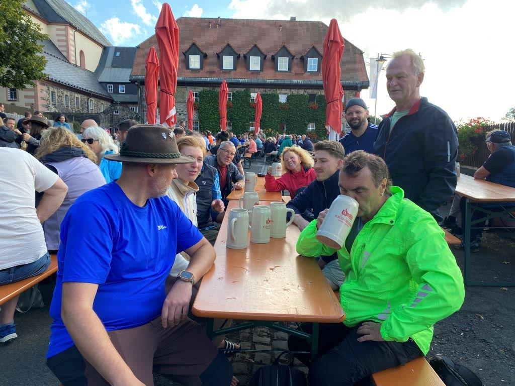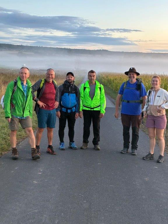 Start war zu viert um 4.00 Uhr in Birnfeld am Sportheim, der Kreuzberg war das Ziel. Wer nicht startet, kommt auch nicht ans Ziel! In Oberlauringen kamen drei weitere Wanderer mit dazu. Der Weg verläuft über Großwenkheim (15 km), Maria Bildhausen (19 km), Salz, Flugplatz (26 km), nach Bad Neustadt, dort warteten bereits drei weitere Wanderfreudige. Am Marktplatz ging es um ca. 9.45 Uhr weiter nach Brendlorenzen, hier kam noch eine Wandrefreundin mit dazu. Über Querbachshof ging es nach Burgwallbach zur Mittagsrast, hier sind nun schon 38 Kilometer geschafft. Nach der Brotzeit erwartete die Wanderer der lange monotone Anstieg auf dem Schotterweg durch den Wald bis zum Neustädter Haus. Nun ist die Strecke wieder abwechslungsreicher, der Aufstieg wird durch schöne Ausblicke belohnt. Um ca. 16.00 Uhr wurde der Kreuzberg erreicht. Der Schmerz geht, der Stolz bleibt! Jetzt gab es das wohlverdiente Kreuzbergbier!