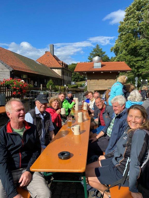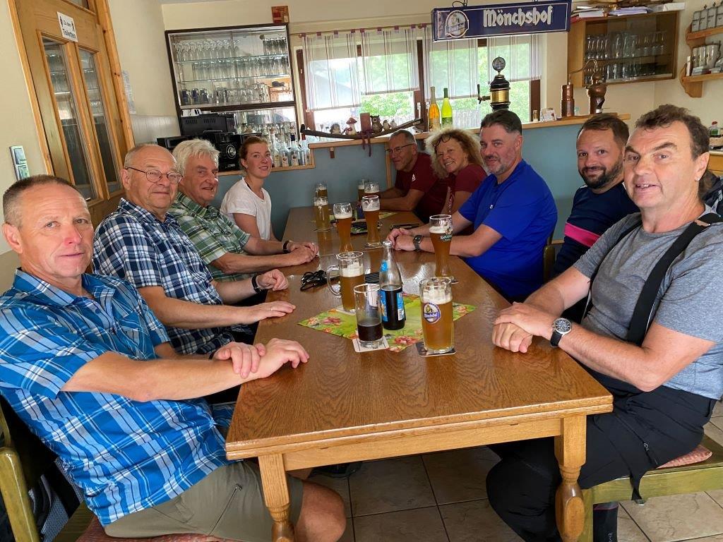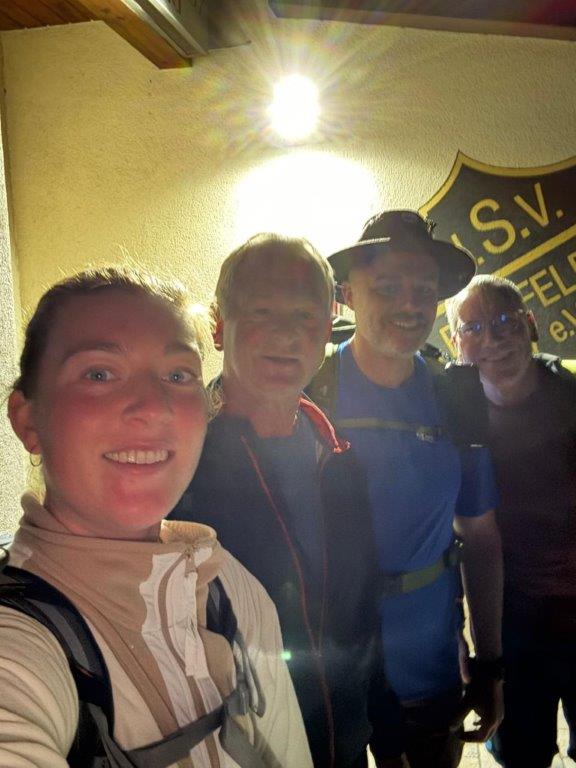 Start war zu viert um 4.00 Uhr in Birnfeld am Sportheim, der Kreuzberg war das Ziel. Wer nicht startet, kommt auch nicht ans Ziel! In Oberlauringen kamen drei weitere Wanderer mit dazu. Der Weg verläuft über Großwenkheim (15 km), Maria Bildhausen (19 km), Salz, Flugplatz (26 km), nach Bad Neustadt, dort warteten bereits drei weitere Wanderfreudige. Am Marktplatz ging es um ca. 9.45 Uhr weiter nach Brendlorenzen, hier kam noch eine Wandrefreundin mit dazu. Über Querbachshof ging es nach Burgwallbach zur Mittagsrast, hier sind nun schon 38 Kilometer geschafft. Nach der Brotzeit erwartete die Wanderer der lange monotone Anstieg auf dem Schotterweg durch den Wald bis zum Neustädter Haus. Nun ist die Strecke wieder abwechslungsreicher, der Aufstieg wird durch schöne Ausblicke belohnt. Um ca. 16.00 Uhr wurde der Kreuzberg erreicht. Der Schmerz geht, der Stolz bleibt! Jetzt gab es das wohlverdiente Kreuzbergbier!